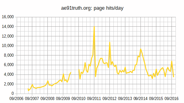 6.) This was written some time near mid January, when they had 2,426 A&E signatures verified. Since that time, they averaged 0.8 new signatures per day, to get to the current number of 2,514. It's 134 day to go till the 9/11 anniversary, so they are on a pace to reach 2,625 signatures. I have no idea how on earth they expect to make it to 3,000. I have inside information that they currently have a backlog of a bit over 200 unverified signatures, of which typically 2/3 would eventually get verified - I can attest that these numbers are plausible. That would give them 140 or so signatures from backlog. Let's be generous and say they get 100 more verified from the coming AIA convention, plus the usual daily trickle of perhaps a signature every other day, and the absolute best they can hope for until the anniversary is to exceed 2,800. If they ever make it to 3,000, the numbers are pimped and doctored.