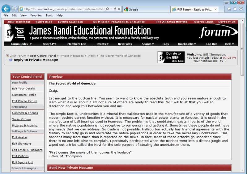And what do you mean, my attacks are criminal, and you're giving me fair warning? You're not going to be my best friend any more, or what? Or am I to be afraid of a more serious threat? Explain. Surely I have a right to know.